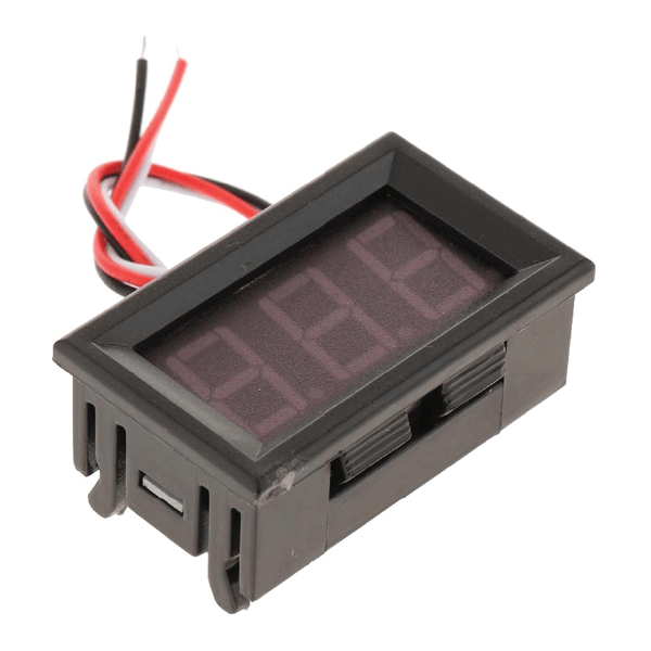 El voltímetro 0-100V con 3 cables es un dispositivo digital diseñado para medir voltajes en el rango de 0 a 100 voltios. Su pantalla muestra las lecturas con precisión, siendo ideal para aplicaciones electrónicas y proyectos donde se necesite monitorear el voltaje de manera eficiente. Los tres cables facilitan su conexión e instalación rápida.